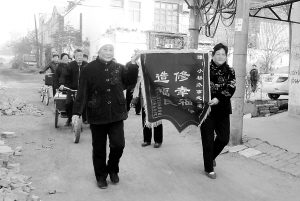 日前,建中社区居民把一幅写有“修幸福路 造福于民”的锦旗送往小桥办事处。年初,川汇区把改造小街小巷列入为群众办理的12件惠民实事之一,计划投资192万元,亮化小街小巷50条、硬化100条,目前此项工作已圆满完成。