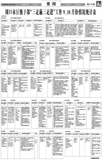 周口市厅级干部“三走遍三走进”工作9、10月份情况统计表