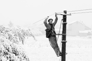 顶风冒雪保电力 12月15日,安徽省宁国市汪溪乡电力部门的工作人员在大雪中检查线路,排除隐患。当日,安徽迎来今年入冬以来第一场雪。地处皖南山区的安徽省宁国市迅速启动寒潮雨雪天气应急黄色预警,积极动员相关部门全面做好冰雪灾害防范应对工作,确保电力等基础设施安全稳定运行,保障群众生产生活正常进行。 新华社发