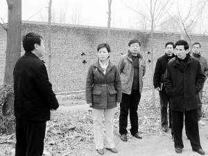 12月15日,周口市委常委、项城市委书记王宇燕到光武办事处察看新农村建设。她强调,社会主义新农村建设要科学规划,在兼顾项目投资长远效益的同时,注重农民自身利益,让农民充分享受改革开放与新农村建设带来的成果。(张康 摄)