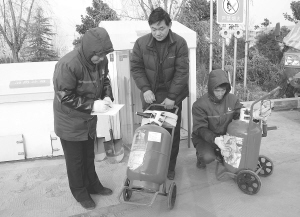 近期干旱多风,鹿邑县对公共场所进行拉网式消防设施排查,对过期消防器材强行更换,对查处的安全隐患限期关门整改,以防安全事故的发生。图为中石化鹿邑公司对自己所属加油站消防器材进行检验更换登记。 (胡洪涛 郭杰 摄)