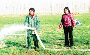 昨日,商水县舒庄乡扶苏村村民在抗旱浇麦。连日来,针对麦田严重旱情,商水县积极组织群众抗旱保丰收。(乔连军 摄)