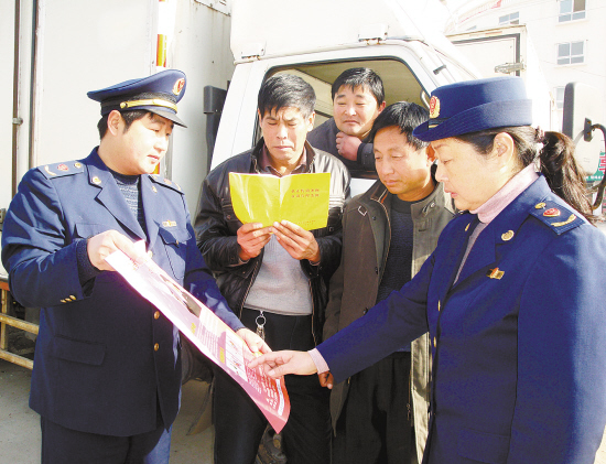 扶沟县工商局组织工作人员在辖区内开展“打击传销、规范直销”宣传活动,引导群众了解、认识传销的本质和危害。图为该局工作人员向群众现场讲解防范传销的知识。(卢付昌 周涛 摄)