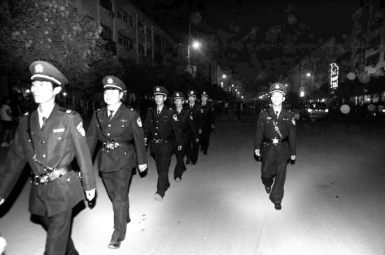 元旦即将来临,项城市公安局组织全体干警深入城乡开展冬季巡逻清理清查集中行动,遏制违法犯罪苗头。这是民警深夜在城区巡逻。(魏 康 杨淑萍 摄)