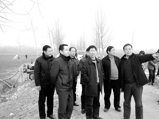 入冬以来,项城市各地掀起农田水利基本建设高潮。这是12月29日项城市市长邹洪、副市长程若光深入到付集镇督导农田水利基本建设。(张康 摄)