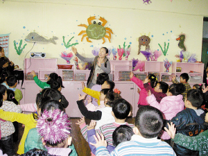 近日,周口市直幼儿园举办多种文艺演出活动,丰富校园生活,培养学生爱好特长。图为大六班师生正在进行文艺表演。(记者 卢好亮 摄)