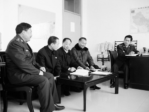 2010年12月21日,太康县人民防空办公室聘请太康县人民法院行政庭法官针对如何依法行政进行指导培训。图为法官们与太康县人民防空办公室工作人员正在对如何依法行政进行探讨。(刘俊涛 摄)