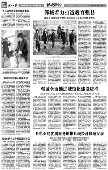 制定远景规划,绘制发展蓝图。该县已通过省级评审新修编的《2009—2020年郸城县城市总体规划》采取社会、专家、技术“三论证”,确保了规划编制工作顺利进行,走在全省前列。该县在现有城市框架基础上向南北方向拓展,采取河洛九宫的用地布局方式,充分体现了科学发展观与和谐建设的原则。规划因地制宜,秉承改造旧城区,快速发展新城区,大力推进工业区的总体规划思想。目前,旧城区改造后面貌焕然一新,充满生机和活力;新城区按照集约用地,一街一景,严禁建私房独院的原则,已填充60万平方米,呈现出新兴的现代化城市雏貌;产业集聚区规划面积10平方公里,道路、供水、排水、休闲等基础设施齐全,显现出蓬勃发展的新气象。此外,该县加快村镇规划工作,19个乡(镇)政府所在地总体规划和102个中心村规划已全部完成,全县村庄规划已完成80%。