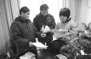 1月13日,一名企业员工(中)在某县人力资源和社会保障局办理工伤认定手续。国务院总理温家宝12日主持召开国务院常务会议,研究部署进一步鼓励软件产业和集成电路产业发展的政策措施,决定将国有企业老工伤人员等纳入工伤保险统筹管理。(宋文 摄)