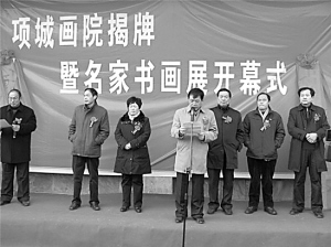 1月12日上午,项城画院揭牌仪式暨名家书画展开幕式举行。项城市市委、人大、政协负责人及该市文联、作协等书画界知名人士出席开幕式。(记者 杨光林 摄)