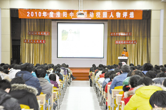 近日,淮阳中学通过校广播站、校报、宣传橱窗等宣传形式,开展了“2010年度感动校园人物”评选活动。该校领导、教师代表、学生代表等700多人参加了当日的评选大会。图为评选现场。(李涛 摄)
