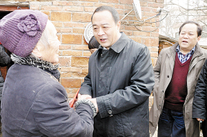 徐光、穆仁先、王宇燕一行首先来到项城市物资局退休职工、省劳模金玉英的家中,为她送去了慰问金和新春的祝福。徐光充满感情地说,你上个世纪50年代被评为省劳模,为社会主义建设作出了很大的贡献。党和政府没有忘记你,我们代表市委、市人大、市政府、市政协来看望你,祝你过一个好年。