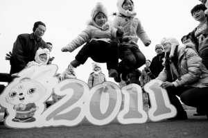 “兔娃”迎新年 1月26日,孩子们在参加趣味运动会“跳入2011”比赛。当日是农历小年,安徽省淮北供电公司与社区联合举办“兔娃迎新年趣味运动会”,吸引众多家长带着孩子参加,在游戏和运动中欢度小年。 新华社发