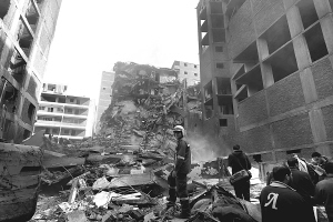 埃及一楼房起火坍塌至少两名消防员死亡 1月27日,在埃及首都开罗市郊,救援人员正在现场工作。开罗东部哈拉菲亚区一栋12层的楼房27日凌晨起火后坍塌,造成至少两名消防员丧生。《今日埃及人》报网站说,搜救人员已在废墟中找到两名消防员遗体。 新华社记者 才扬 摄
