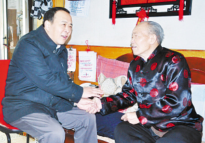 徐光一行首先来到老干部朱岫峰的家中。一进门,徐光就握住朱岫峰的手说,春节就要到了,我们代表市委、市人大、市政府、市政协四个班子的领导来向您拜个早年。徐光关切地询问他的生活、身体情况,并嘱咐他要劳逸结合,保重身体。随后,徐光一行又先后走访慰问了杜占林、赵坤祥、卢心敬、田有申、皇甫有风、白明宽、刘家珍、沈伯琤、韩家武等老同志。每到一家,徐光都详细了解老同志的饮食起居、身体状况等情况,并向他们简要介绍2010年我市的经济社会发展情况。