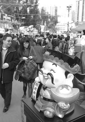 1月28日,年宵市场上供市民选购的中国传统饰品。当日,香港传统年宵花市在维多利亚公园等全港的14个公园及游乐场开锣,市民纷纷来到年宵花市赏花购物,感受新年气氛。据悉,每年节前开市大吉的年宵花市一直延续到大年初一的凌晨,除了传统的花市,还有卖小吃、玩具、杂货等的年货摊档。 新华社发
