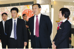 今年1月12日,中国工商银行河南省分行党委书记、行长刘卫星来周口调研。中共周口市委书记毛超峰、市长徐光亲切会见刘卫星行长一行。双方在会谈中,对工行周口分行一年来的工作给予了充分肯定和高度评价。市委书记毛超峰说,工商银行长期以来围绕周口发展大局,落实金融政策,畅通融资渠道,主动与周口市优势产业、重点项目搞好对接支持,为促进周口经济社会发展做出了积极贡献。刘卫星行长在会谈中特别提到,工商银行在周口的发展态势良好、业绩显著,在全省工商银行系统的贡献度不断提高。