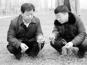 春节放假前,鹿邑县委书记杨廷俊、代县长朱良才于1月27日、28日,分别带队深入田间地头查看旱情,了解小麦长势,安排部署抗旱浇麦具体工作,要求在天气回暖后,各乡镇及有关部门要组织群众搞好麦田管理工作,农业技术人员、气象部门专家一起探讨抗旱浇水的最佳时机,提前安排麦田灌溉的准备工作。