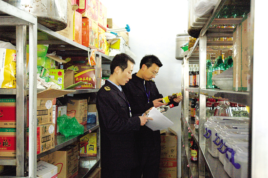 周口市卫生监督处不仅在日常工作中进行医疗卫生、食品安全的监督管理,在两会召开期间,他们更是与会代表、委员的健康卫士,图为他们在对餐饮卫生进行认真监督。(刘艳霞 摄)