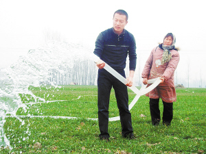 2月15日,商水县大学生村干部张耀正在帮助村民浇灌小麦。连日来,该县500多名大学生村干部深入田间,与缺少劳动力的困难家庭结成对子开展抗旱保苗。(吕光耀 马建国 摄)