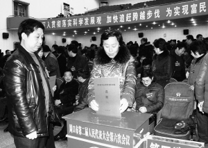 出席市二届人大六次会议的代表进行大会选举,并投下自己神圣的一票。(记者 李寒 摄)