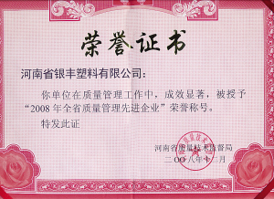 科学技术就是生产力,这句话在银丰得到了充分验证。几年来,该公司加大科技投入,高薪聘请27名专业技术人才,充实到研发、生产、管理等重要岗位。该公司建立了周口市塑料加工工程研究中心,筹建的河南省功能性聚乙烯薄膜工程技术研究中心已通过省科技厅专家组的验收。目前,该研究中心建筑面积达2350平方米,中试车间面积达600平方米。该研究中心下设产品研发室、工艺研发室、机械研发室、信息化研发室等7个科室和培训中心。该研究中心与河南省化工学院研究所、郑州轻工学院强强联合,在科研平台设施建设及功能性聚乙烯新产品项目研发方面,代表了全省功能性聚乙烯制品科研的最高水平。一分耕耘,一分收获。银丰公司生产的茂金属流滴膜,经国家质监部门检测,质量遥遥领先于国内同行,达到国际标准。孙美菊主持开发的PE减雾流滴长寿棚膜荣获“河南省技术开发成果二等奖”。