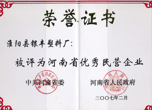 该公司董事长、总经理孙美菊毕业于郑州轻工学院,于1994年创办淮阳县银丰塑料厂,是中共河南省委第八届党代表、河南省第十一届人大代表,先后获得“河南省巾帼科技致富带头人”、“巾帼建功标兵”、“三八红旗手”、“河南省先进工作者”、“全国轻工行业劳动模范”等30多个荣誉称号。公司生产的产品荣获“河南省技术开发成果二等奖”和“优秀新产品奖”。