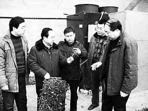 元宵节刚过,河南农大教授孙治强就来到蔬菜大县扶沟县查看农民育苗情况,指导农民进行蔬菜大棚管理,为蔬菜生产提出意见和建议,受到了菜农的好评。图为孙治强教授在大棚内和当地技术员一起探讨蔬菜育苗情况。(谷志方 摄)