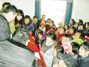 昨日,商水县魏集镇设立农业科技咨询台,邀请农业专家现场解答农民提出的问题。图为该镇农民在踊跃向专家咨询。(苏建广 摄)