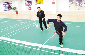 昨日下午,几位市民在市体育馆进行羽毛球训练。随着城市功能的完善,很多市民选择到体育馆锻炼身体,享受运动带来的快乐。(记者 李寒 摄)