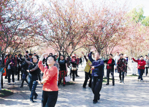 2月27日,春城昆明阳光明媚,市民们利用双休日来到鸟语花香的翠湖公园,翩翩起舞。 新华社记者 杨宗友 摄