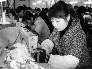 商水县舒庄乡诚诚服装厂的工人正在加工服装。今年,商水县1500多个民办企业为当地农民工提供7万多个就业岗位,使当地农民工可以就近在家门口打工。(乔连军 摄)