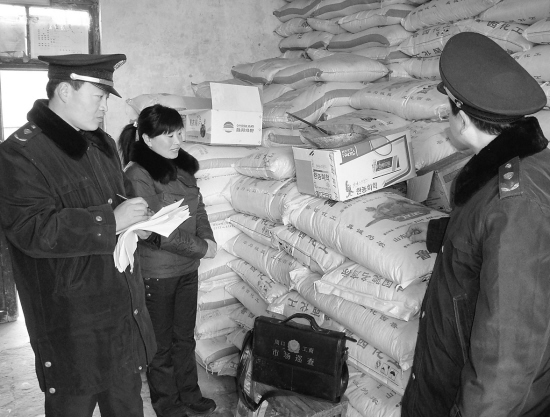 连日来,扶沟县工商执法人员对农资门店进行严格排查,确保农民在春耕期间购买到放心农资。图为该局执法人员在一家农资门店向经营户询问进货渠道。卢付昌 摄