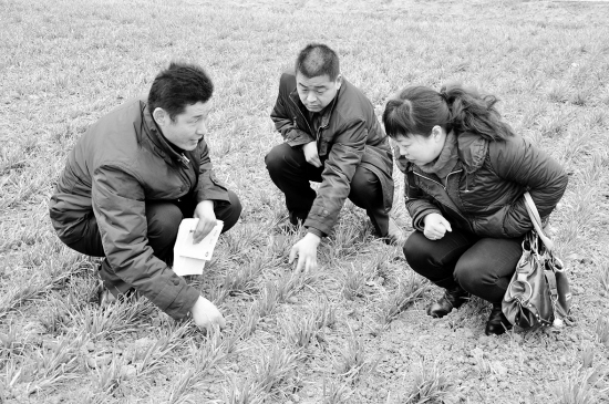 近日,川汇区农林局组织10名科技人员分包33个行政村,深入基层,指导春季麦田管理,切实帮助农民解决生产中遇到的技术难题。 范胜男 杨玉洁 理喜军 摄