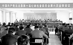 本报讯 (记者 韦 伟 实习生 迟 驰 /文 董国俊 /图)3月3日上午,中共沈丘县第十届纪律检查委员会召开第六次全体会议。会议传达了中央和省、市纪委全会精神,总结了全县去年党风廉政建设和反腐败工作,部署今年工作任务。县委书记杨永志在会上要求,全县各级党政组织和纪检监察机关要围绕中心,服务大局,充分发挥职能作用,进一步加强反腐倡廉建设和作风建设,不断提高反腐倡廉建设科学化水平,为转变发展方式,建设幸福沈丘做出积极的贡献。