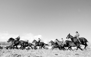 3月5日,选手们在速度赛马比赛中。当日,在吉尔吉斯斯坦伊塞克湖州乔尔蓬,阿塔市赛马场举行了迎接吉尔吉斯斯坦传统节日(新年)纳吾热孜节的赛马比赛。