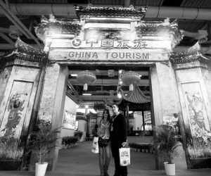 3月9日,在德国首都柏林举行的柏林国际旅游博览会上,两名参观者在中国展位前驻足留念。第45届柏林国际旅游博览会当日正式开门迎客。