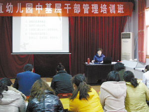 3月6日,周口市直幼儿园举办中基层干部管理培训班,加强中基层干部理论学习,全面提升学校教育教学水平。图为该园园长郭蕊在讲授《弟子规》。(记者 卢好亮 摄)