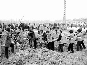 | 3月10日,项城市西城植物园建设启动,该市教育系统、南顿镇是建设主力军。(张康 摄) |
