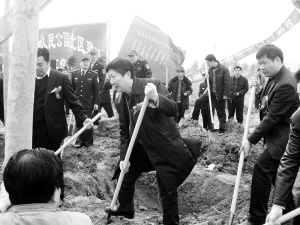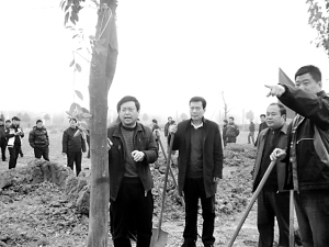 | 3月9日,项城市市长邹洪参加人民公园义务植树活动。