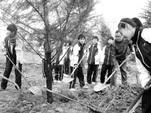 | 项城市城市绿化活动得到社会各界积极响应,这是广大中小学生在义务植树。(金月全 摄) |