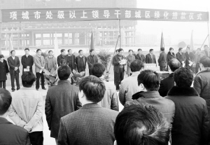 | 2月24日,项城市举行处级以上领导干部城市绿化捐款仪式。