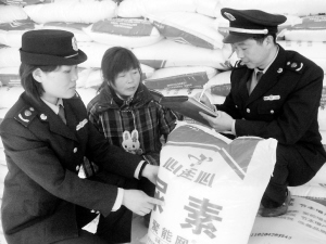 为确保农民朋友购买到优质放心的农资,连日来,太康县工商局加强了对种子、化肥等农资商品的检查力度。图为该县工商局执法人员正在一农资经销店内检查玉米种子广告。(王青俊 李树军)