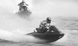 3月12日,法国选手萨帕塔(前)在比赛中。当日,在卡塔尔首都多哈进行的2011年水上摩托世界锦标赛揭幕战卡塔尔大奖赛坐式竞速赛F1组第二场比赛中,萨帕塔以25分26秒41的成绩率先跑完15圈,获得第一名。两场比赛积50分,获得卡塔尔大奖赛坐式竞速赛F1组冠军。 新华社发(陈少金摄)