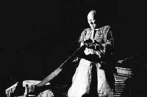 再一次回到乌尔善广告导演出身这个话题,按照马克思两分法的观点,这个身份有弊自然也有利。即便您没看过片子,也能从预告片里窥见,《刀见笑》是部色彩与动作设计有着自己强烈特点的风格化作品。色彩方面,黑白、青、红三色分别区分与表现各一个故事;表达方面,慢镜头、分割画面、纪录片形式的闪回画面以及动画效果等各类手法应有尽有。人物造型上,《刀见笑》也相当给力,有扮童颜鹤发的特性侏儒演员,也有夸张如《人体雕像》里那位影史著名胖子的厂公……加上重金属、古典音乐各类型的配乐,和全片的共3000多个镜头……《刀见笑》基本上扫清了自己形式上的尿点。