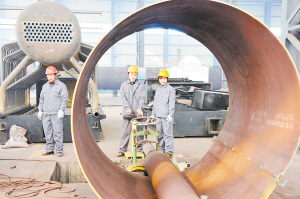 日前,河南永兴锅炉集团车间内生产场面红红火火。该公司投资1亿多元建成了年产500套蒸压釜、1000蒸吨A级锅炉项目,成为河南省锅炉行业的佼佼者。(记者 沈湛 摄)