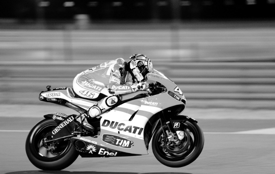 3月19日,杜卡迪车队意大利车手罗西在排位赛上角逐。当日,2011年世界摩托车锦标赛揭幕站MOTOGP级别在卡塔尔鲁塞尔国际赛道进行了排位赛,罗西以1分55秒673的成绩获得MOTOGP级别排位赛第九位。 新华社发