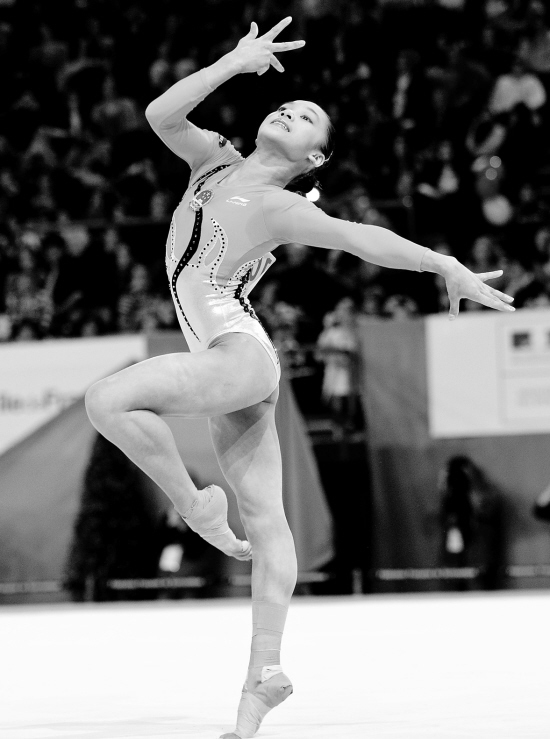 3月19日,中国选手吴柳芳在比赛中。当日,2011体操世界杯法国站在巴黎开赛,吴柳芳在女子自由操预赛中以12.400分的成绩名列第十位。 新华社发(尼古拉·达蒂什摄)