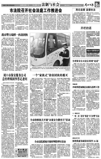 韩总:目前我市从事保安服务专业化的保安公司只有我公司一家,也是城区唯一可以从事武装押运的保安公司,应该说,作为本市保安服务市场的专业军和主力军,公司不仅得到了经营上的积累,同时也创造了非常良好的社会效益,为协助公安机关维护社会治安、确保保安服务行业健康发展发挥了积极的作用。市场开放后,保安服务行业将逐步展现出更为广阔的发展前景,将成为繁荣市场、推动保安行业健康发展的重要因素,而且对于周口保安公司而言更尤为如此。但是,在市场放开初期,市场秩序多多少少可能也会面临一些新问题,对此,我相信,公司一定会在市公安局的领导下,一如既往地发挥好自律和引领作用,为本市保安服务市场的规范有序发展推波助澜。