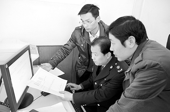 为确保企业网上年检顺利进行,使全市的企业能及时了解和掌握网上年检的实际操作技能,市工商局派出了专业技术人员深入企业进行指导和解决出现的相关问题。图为工商人员现场指导企业网上年检。(王映 杨华伟 摄)
